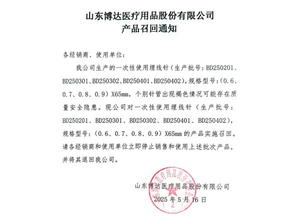 山東博達(dá)醫(yī)療用品股份有限公司是生產(chǎn)可吸收性外科縫線專業(yè)廠家,主要產(chǎn)品有可吸收縫合線 、內(nèi)窺鏡圈套線、穴位埋線、快吸收美容線、醫(yī)用羊腸線 膠原蛋白線以先進(jìn)的生物技術(shù)提取了健康哺乳動物內(nèi)臟的膠原蛋白為基材,采用先進(jìn)的工藝加工而成,線體的主要成分為高純度膠原蛋白,并獲得了國家發(fā)明專利,頒布了YZB/國6301-2013《可吸收性外科縫線》產(chǎn)品標(biāo)準(zhǔn),并通過了ISO9001:2015和ISO13485:2016質(zhì)量管理體系認(rèn)證。